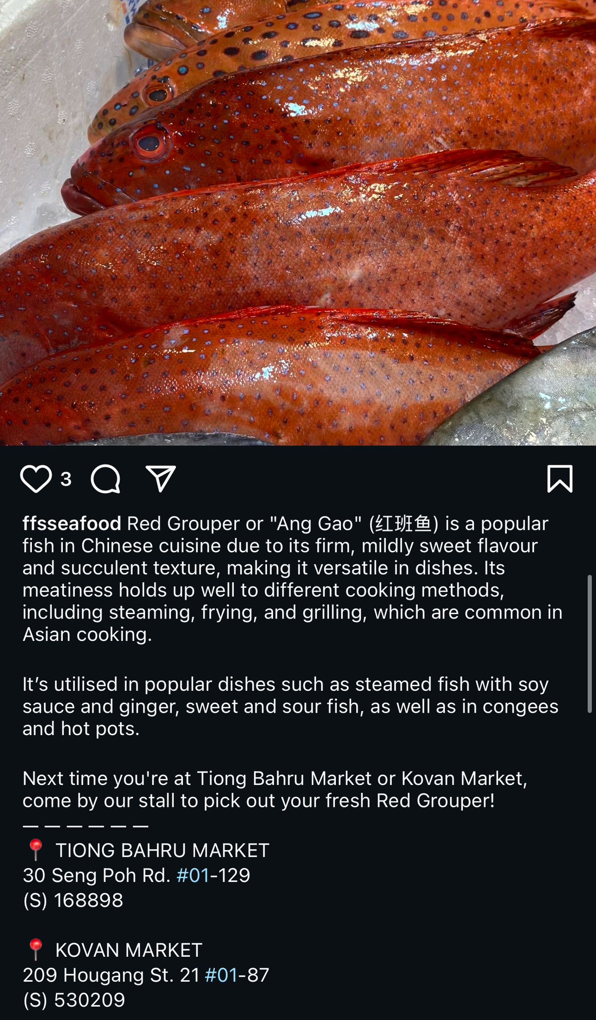 FFS Seafood is a business specialising in fresh and affordable seafood, operating at two prominent wet markets in Singapore: Tiong Bahru Market and Kovan Market. They approached Cliff Digital Media to create and manage their Instagram page from scratch, relying solely on photos they provided, with a one-month timeline for completion.