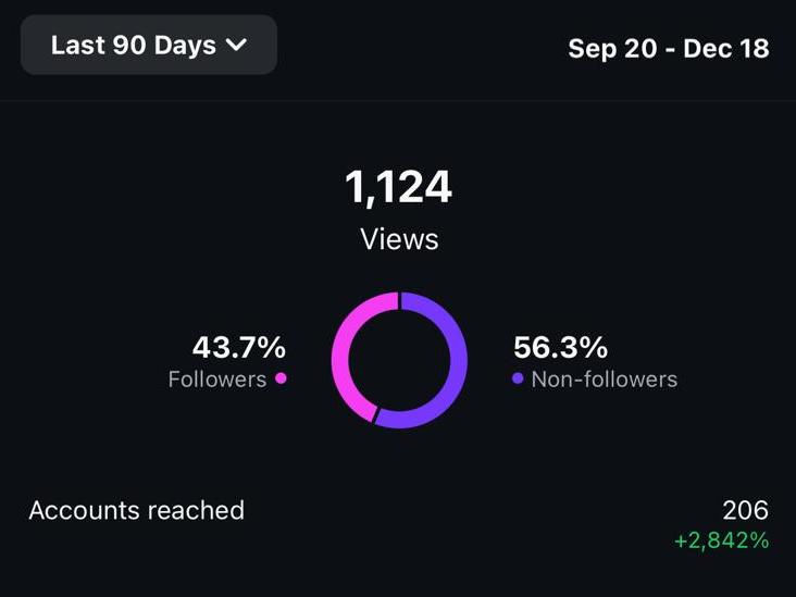 Through consistent posting, and informative captions to accompany the captivating visuals, we achieved the following results organically without any uploaded reels, paid ads or boosted posts: